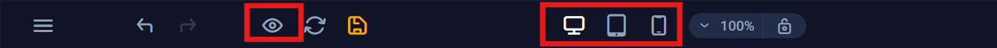 Before publishing your site, you can preview it to see how it looks on different devices. Click the preview icon (the eye symbol) in the top bar, and choose from desktop, tablet, or mobile views.