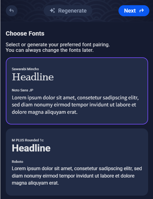 Once the AI finishes creating your content and layout, you’ll be asked to customize your site’s appearance before entering the full editor.